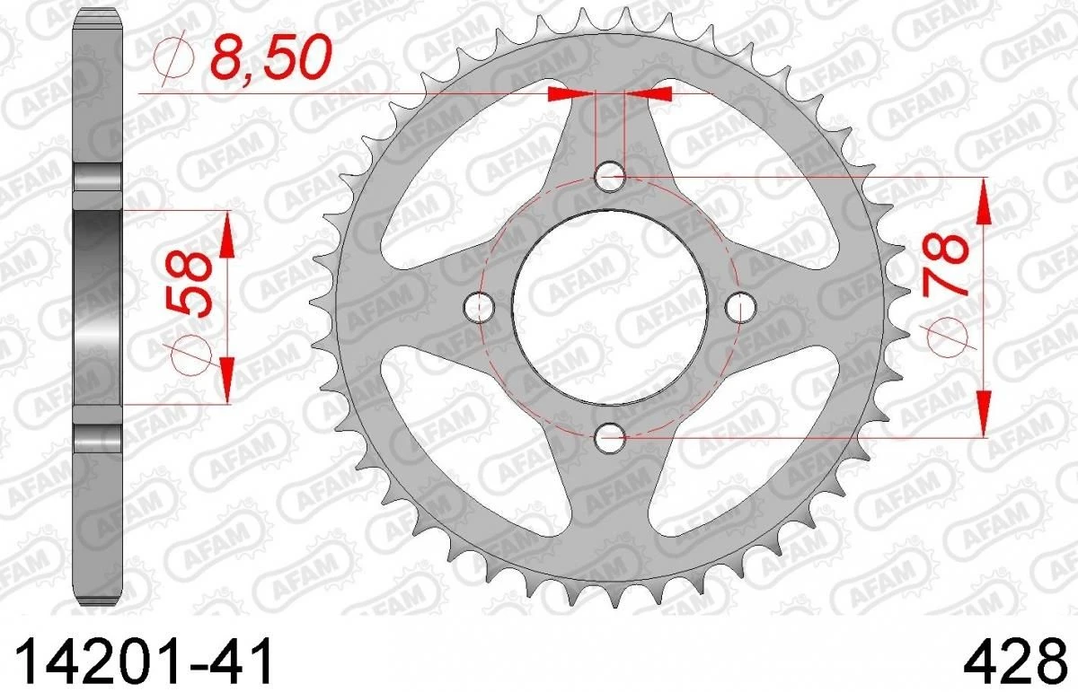 AFAM Tandwiel Achterzijde Staal 41T – 428