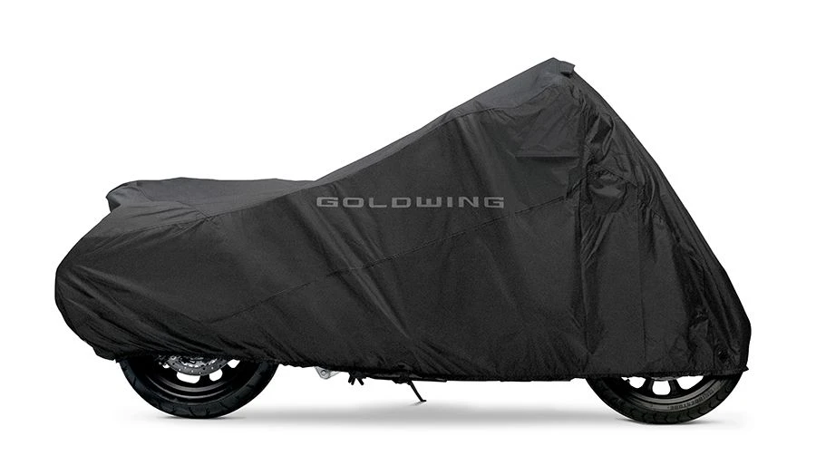Waterdichte stof van 300 denier waaronder de motor kan drogen terwijl hij bedekt is. Beschermt de lak tegen uv-stralen. Voorzien van een zachte voering aan de binnenkant, ventilatieopeningen en Gold Wing-logo’s met grijze biezen. Beschikt over een opbergvak. Deze beschermhoes kan worden gebruikt voor de GL1800 wanneer de topkoffer wordt verwijderd. Om de topkoffer te verwijderen, zijn de volgende accessoires nodig: -08F71-MKC-A00 Verwijderingskit Topkoffer -08F88-MKC-A00ZB/08F88-MKC-A00ZE Kleurenkit voor Verwijdering Topkoffer R367/NHB53P