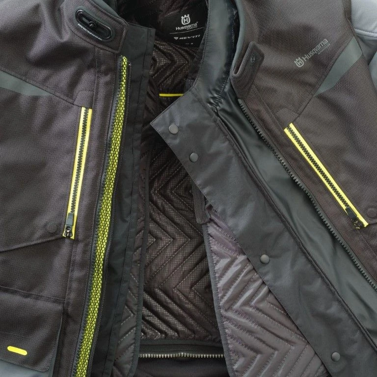 De jas is speciaal voor Husqvarna ontworpen door REV’IT, die de jas ook nog wat extra comfort heeft meegegven. Zo heeft hij een lange en korte verbindingsrits om de jas aan een motorbroek te bevestigen (bijvoorbeeld de gelijknamige motorbroek.), zijn de ellebogen voorgevormd om de rijhouding te ondersteunen en is er een comfortkraag aanwezig. Dankzij verstelbaarheid op meerdere plaatsen zit de jas altijd als gegoten.