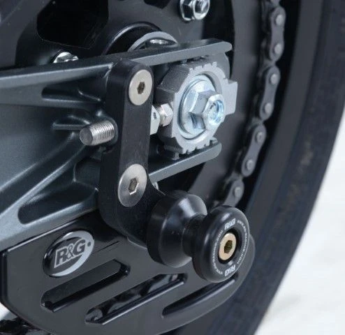 Wanneer er geen schroefdraad in de achterbrug is om een bobbin te monteren kan de R&G “Offset Cotton Reels” gebruikt worden. Zo kan er via de kettingspanner/achteras toch een bobbin op de motor gemonteerd worden en kan de motor dus met een paddockstand veilig en stevig gestald worden. Ook beschermen de bobbins de achterbrug bij een val.
